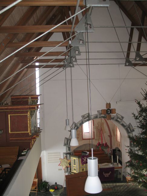 /in Breitscheid, KircheIn der Kirche in Breitscheid wurden neue Lampen installiert. Dies war nötig, da die alten Lampen mittlerweile über 40 Jahre im Betrieb waren. Das neue Lampensystem kann man nun dimmen. Auch haben wir nun zwei Lichtspots, einen für die Kanzel und einen für das Lesepult.