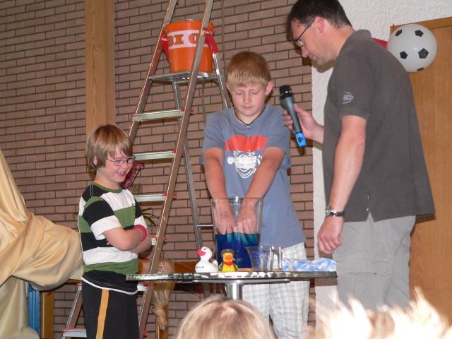 Mit Liedern und einer Andacht über „klares Wasser“ mit einer Wasserpumpe zur Veranschaulichung begann die Veranstaltung gegen 10 Uhr in der FeG.