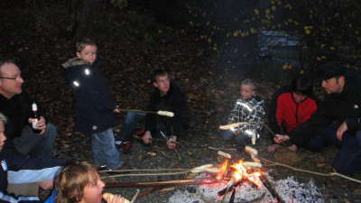 Am Ziel war für Essen und Getränke gesorgt, die Kinder gingen auf Schatzsuche und über dem Lagerfeuer wurde Stockbrot gemacht.